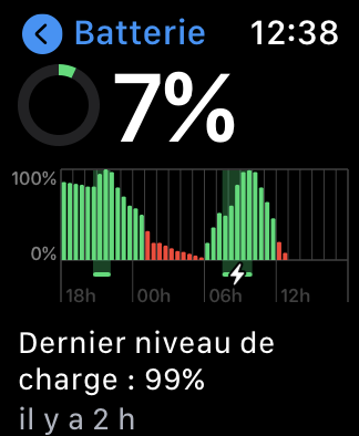 Bonjour, sans utilisation spécifique mon apple watch acheté au mois de septembre 2020 se décharge en très peu de temps, même la nuit... (Voir captures d'écran)