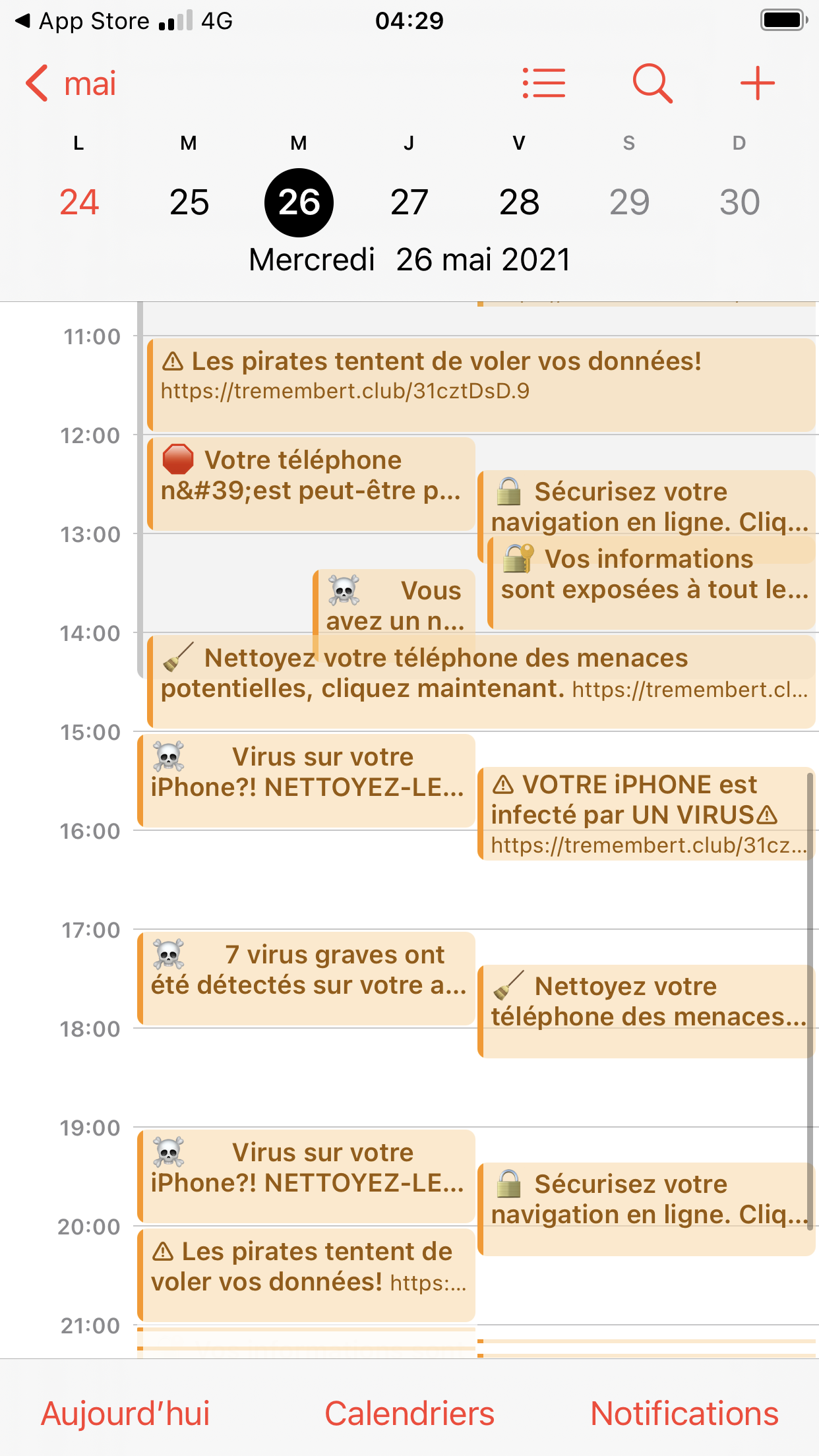 Pas de panique ! Ce n'est rien de grave. Je vous explique, vous avez dû cliquer sur un lien indésirable qui a permis l'abonnement à un calendrier. Mais je le répète, ce n'est rien de grave !