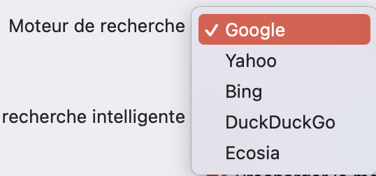 Tu fait la sélection dans le menue de " Safari -> Préférences "et tu sélectionne l'onglet Rechercher .