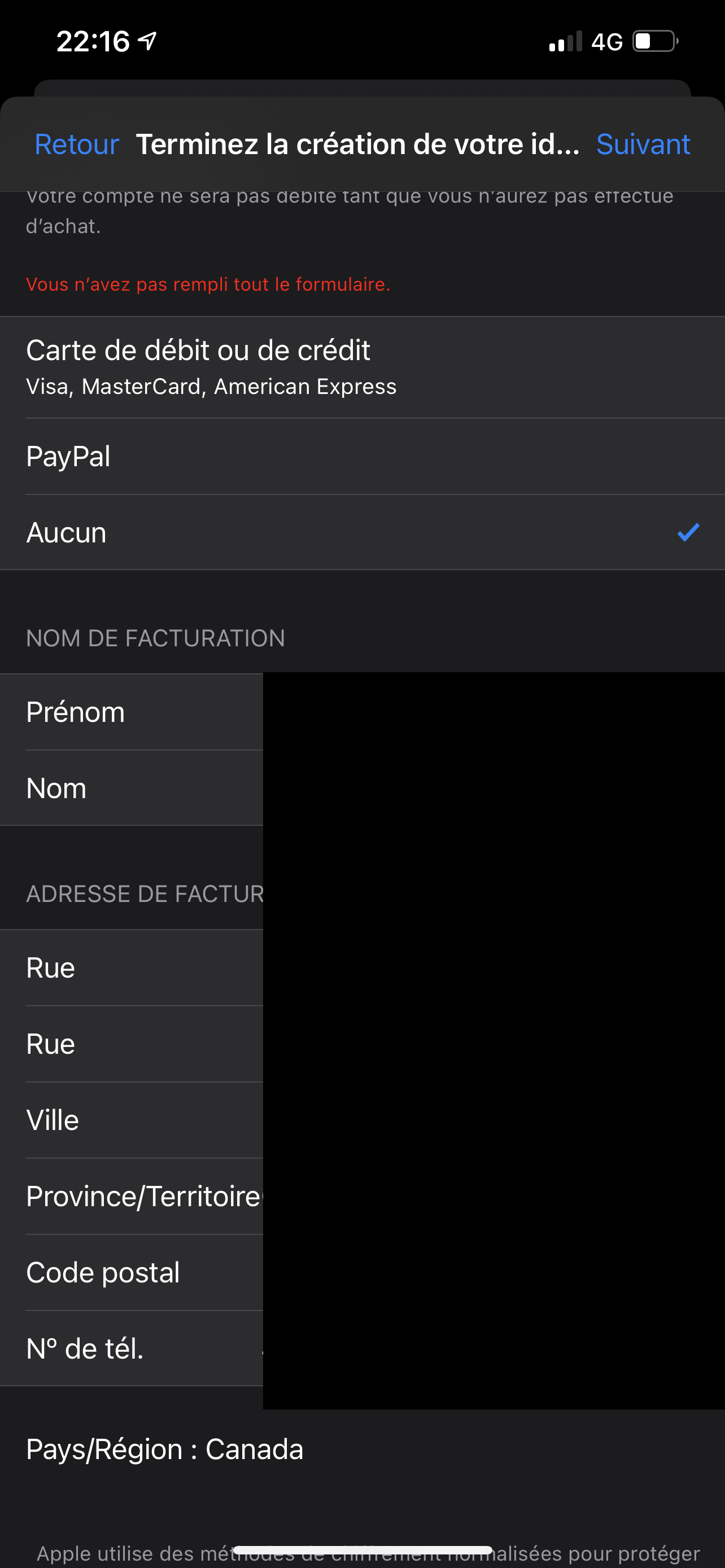 on me demande de vérifier mon compte pour l’Apple store mais quand je rempli les espaces le message vous n’avez pas rempli tout le formulaire s’affiche alors que j’ai bien tout rempli