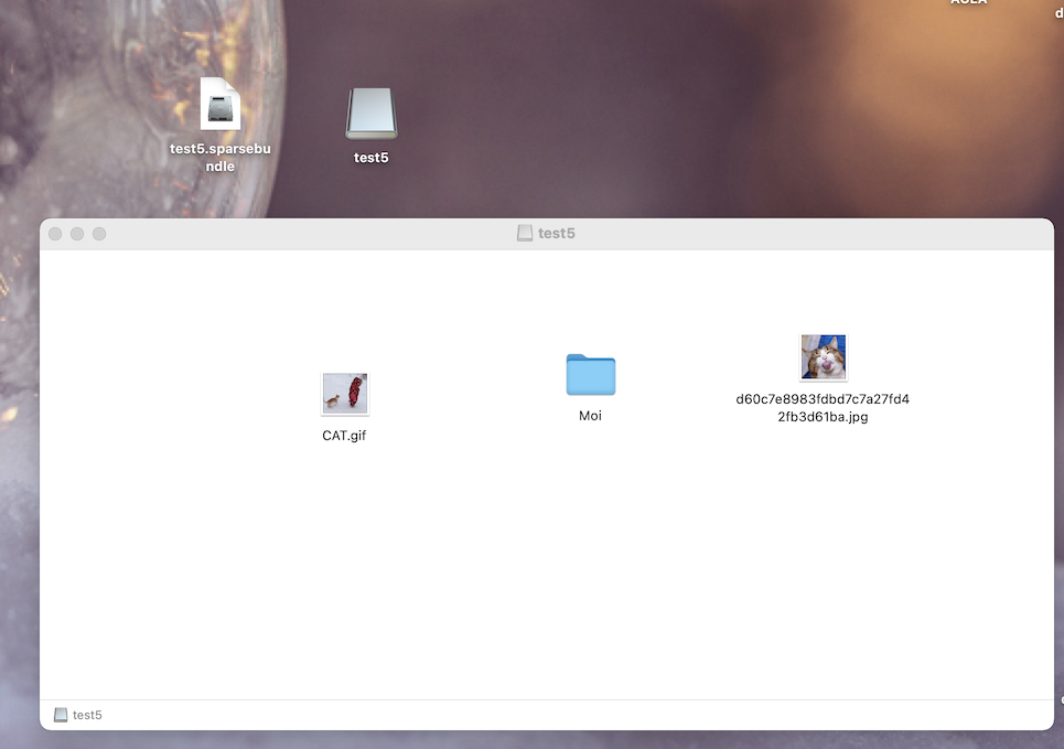 J'ai ajouté quelques fichiers dedans et j'ai ajouté ce dossier test5.sparsebundle dans iCloud.