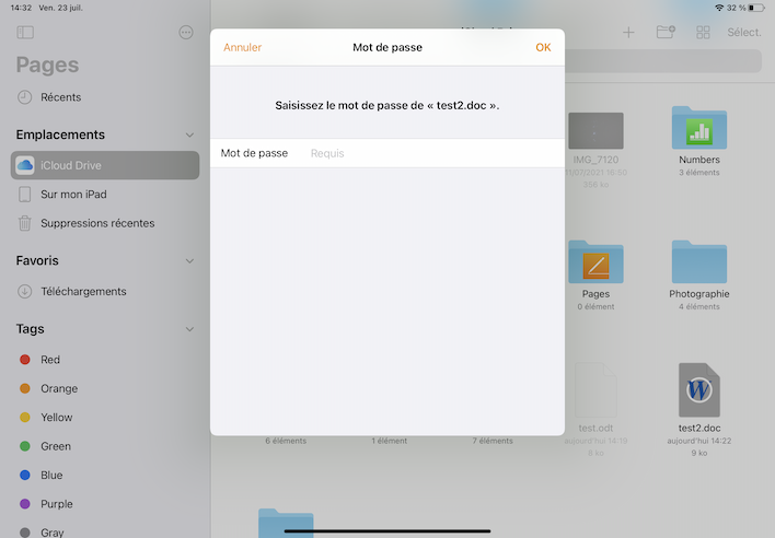 Maintenant sur mon iPad, j'accède à Fichiers. Je vois bien un dossier test5.sparsebundle.zip, je peux l'ouvrir pour avoir juste un test5.sparsebundle, tout court.