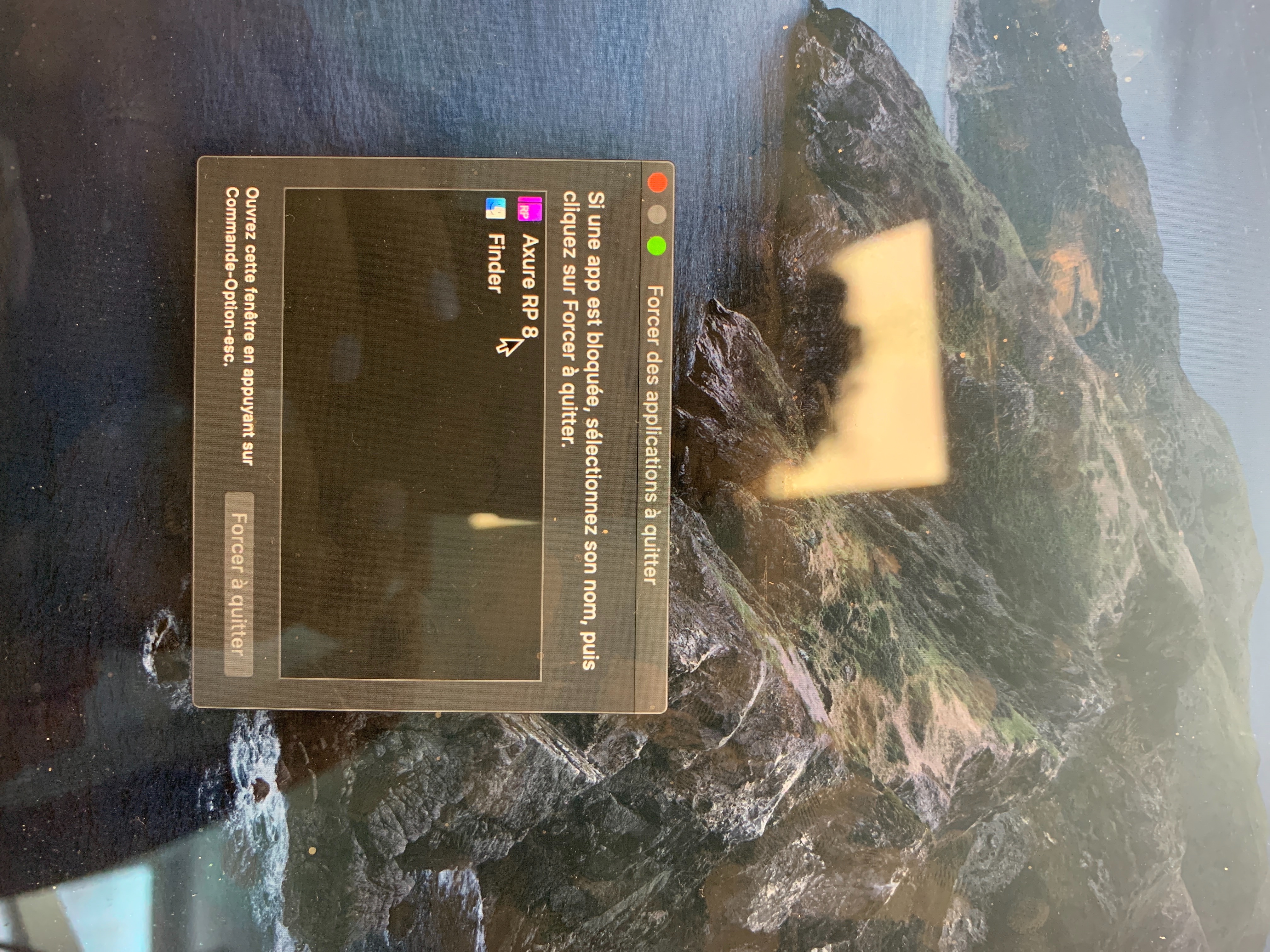 J’ai une application (Axure R8) que je n’arrive pas à quitter même en Forcer Quitter. Je n’arrive pas non plus à la faire disparaître ou la placer dans ma corbeille.