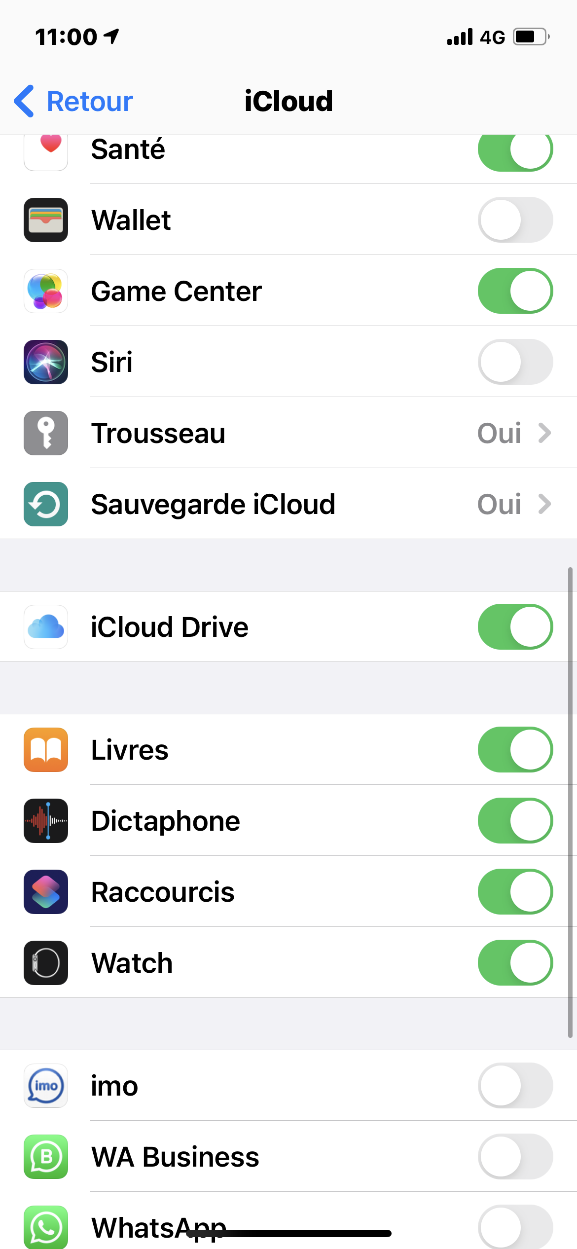 Bonjours il suffit juste d’activer l’iCloud drive et de coche l’application que vous voulez sauvegarder dans l’iCloud après appuyer sur (sauvegarde iCloud ) comme vous le voyez sur la photo