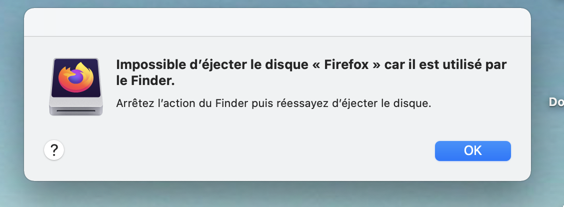 Merci, mais lorsque je fais "éjecter" : "message : impossible d'éjecter...."