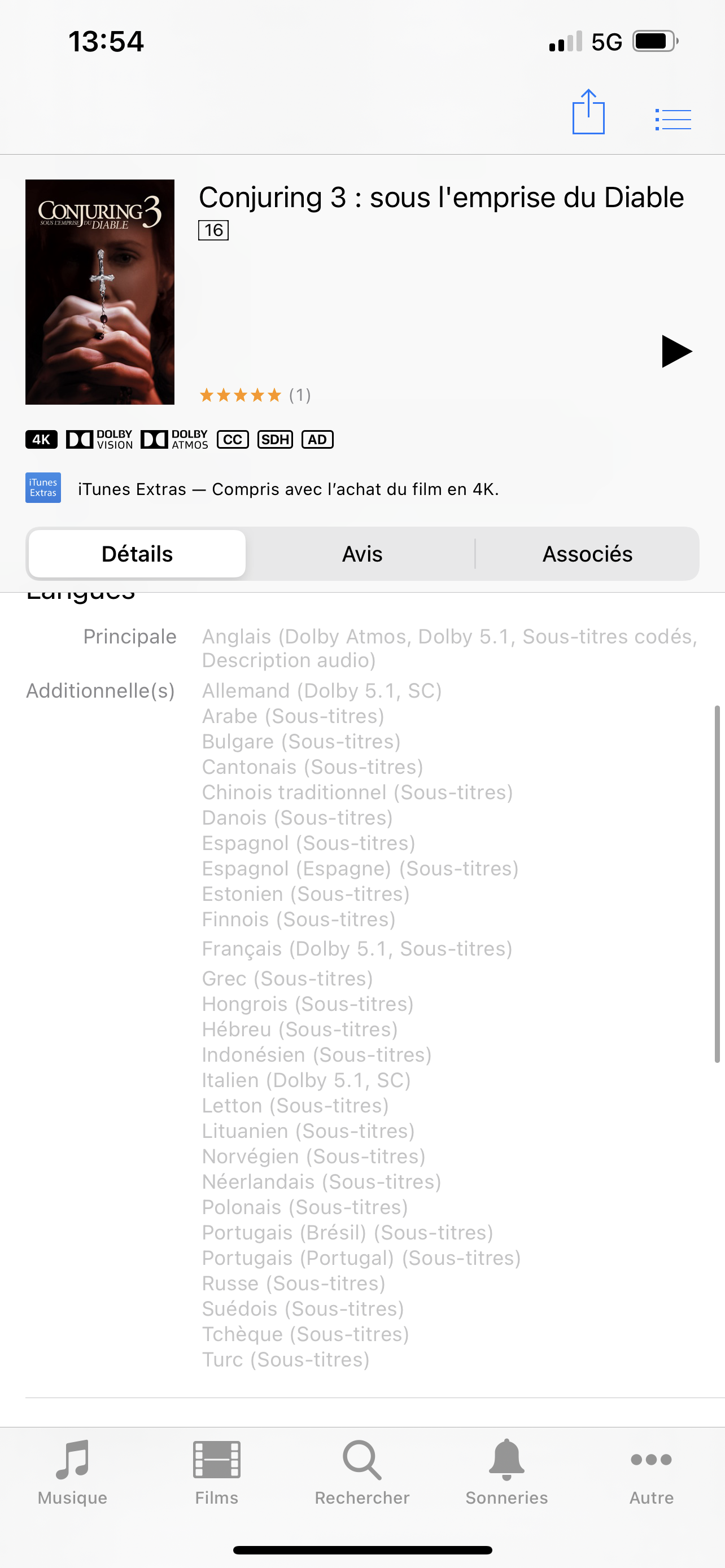 hier je viens d’acheter conjuring 3 sous l’emprise du diable.