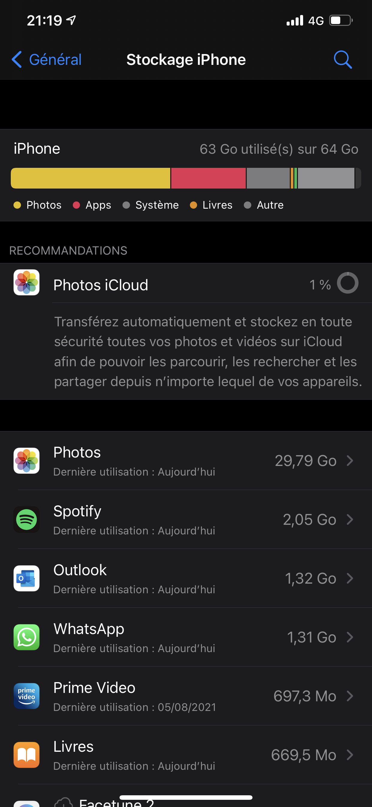 je n’arrive même pas a vous joindre la capture d’écran des stockage iphone et icloud car elle se s’enregistre même pas du au manque de stockage