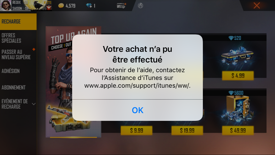 Achat non effectué sur iTunes Store