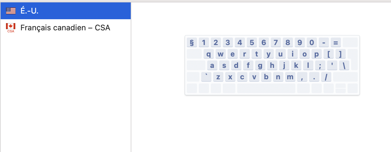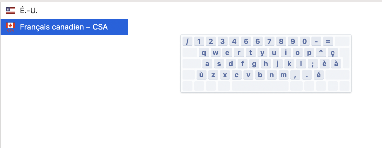 Attention le clavier QWERTY américain n'est pas identique au clavier QWERTY Canadien français.