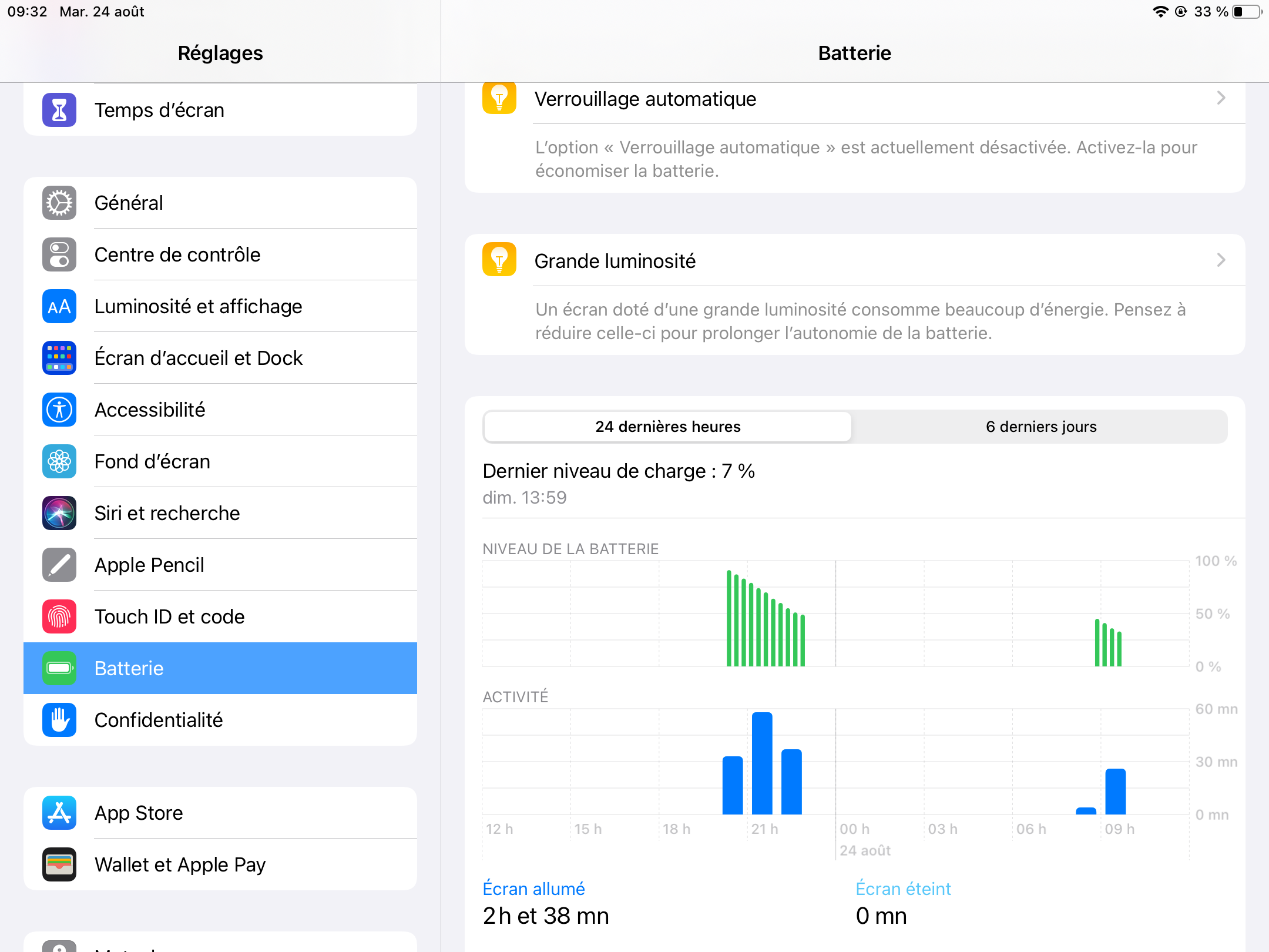 Bonjour, j'ai un problème avec la batterie de mon iPad de septième génération, malgré plusieurs échanges standards de la part de Darty la batterie perd toujours environ 10 % en une demi-heure. Que faire ? Est-ce un problème spécifique à cette génération ? Merci d'avance.