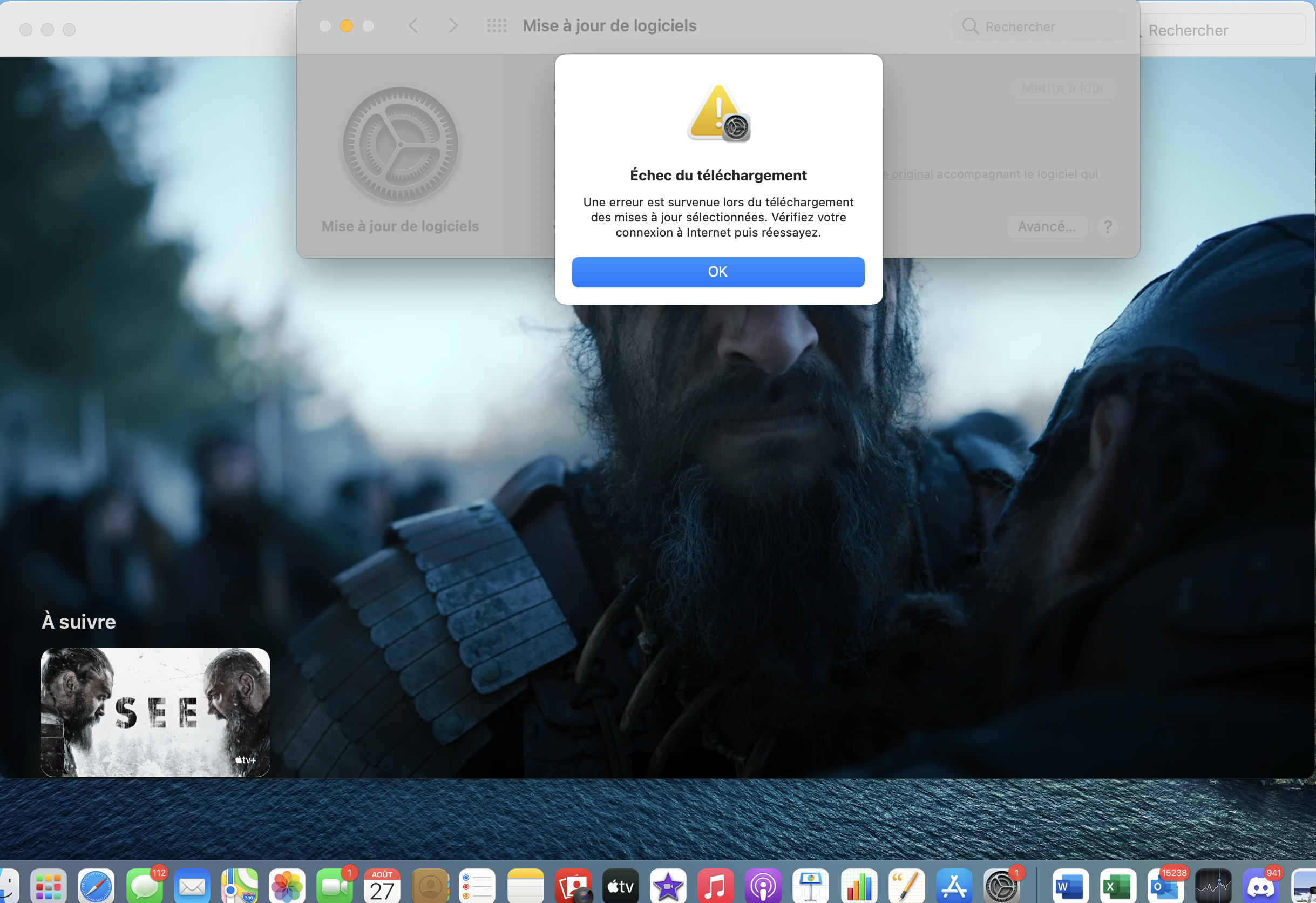 Bonjour, ça fait depuis quelques temps que je cherche à mettre à jour mon Mac sans succès, à chaque fois un msg d'erreur apparait juste avant la fin du téléchargement. Je sais plus quoi faire.