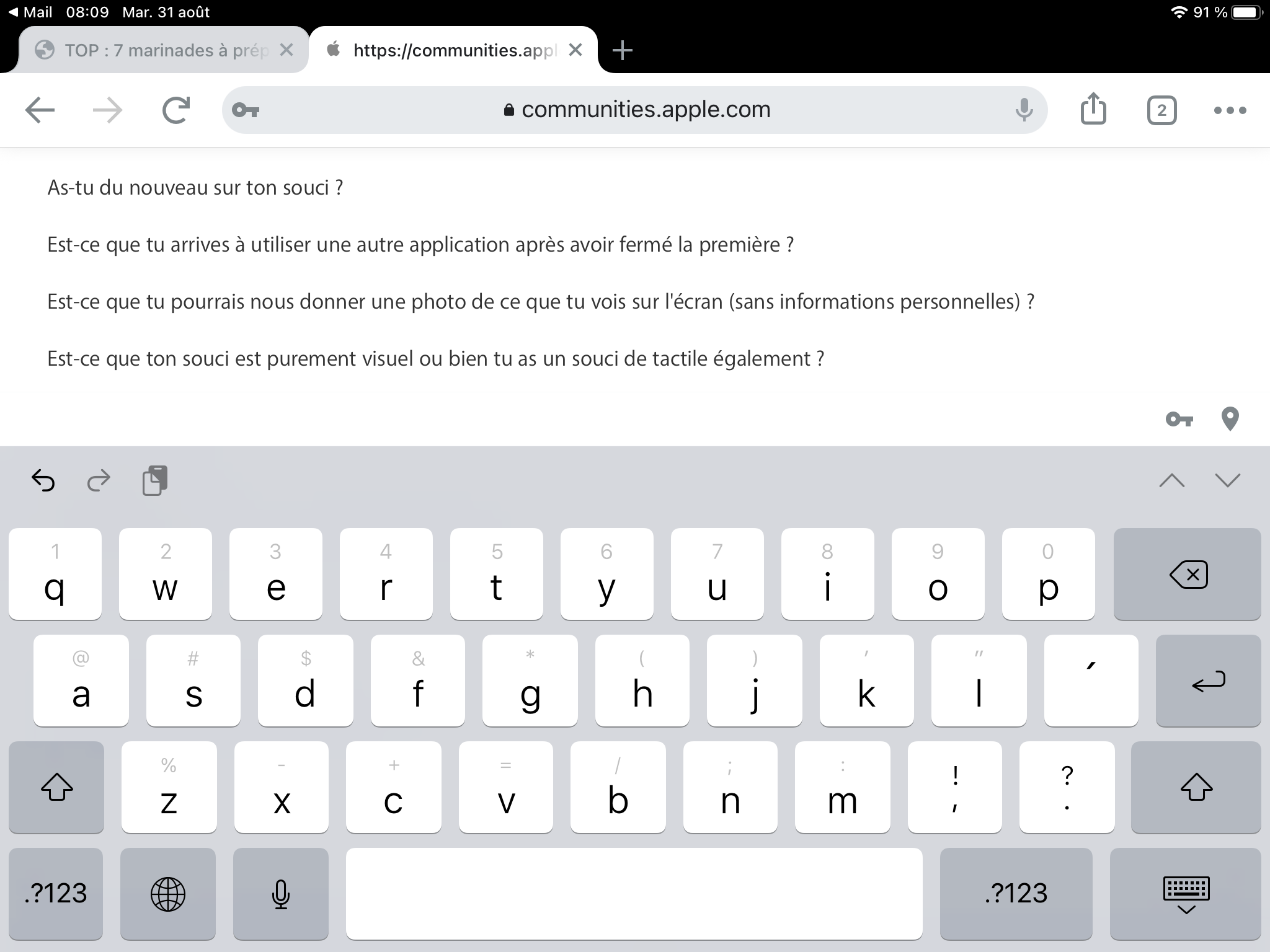 Quel serait le problème sur mon iPad, car lorsque je change d’application, le fond de cet application reste en fond d’écranpuis tout est devenu très pâle lettrage, etc