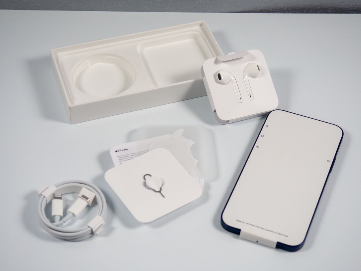 Depuis la sortie de l'iPhone 12, les boites d'iPhones sont réduites : il n'y a plus d'écouteurs ni de prise secteur fournis dans la boite. (D'après Apple, c'est écologique, ils peuvent transporter plus de boites d'un coup : ça prend moins de place).