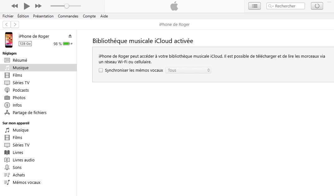 Synchroniser bibliothèque iTunes avec mon iPhone