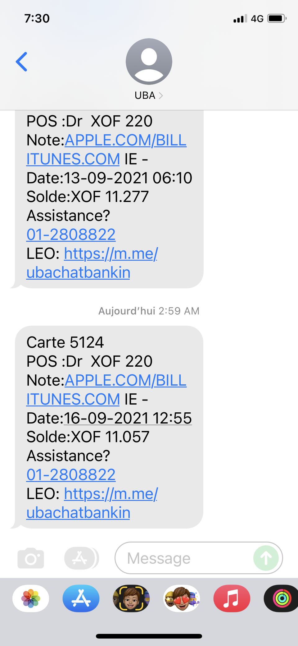 je suis débité de façon journalière la somme de 220 Frs cfa depuis le 07/09/21.