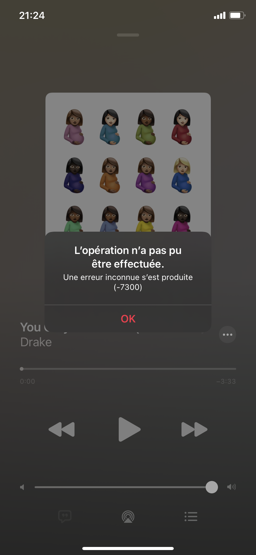 Une erreur inconnue s’est produite (-7300) sur Apple Music