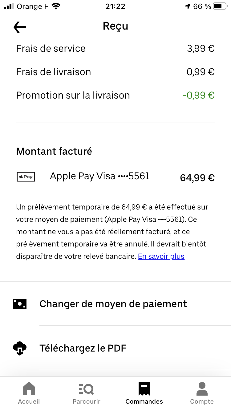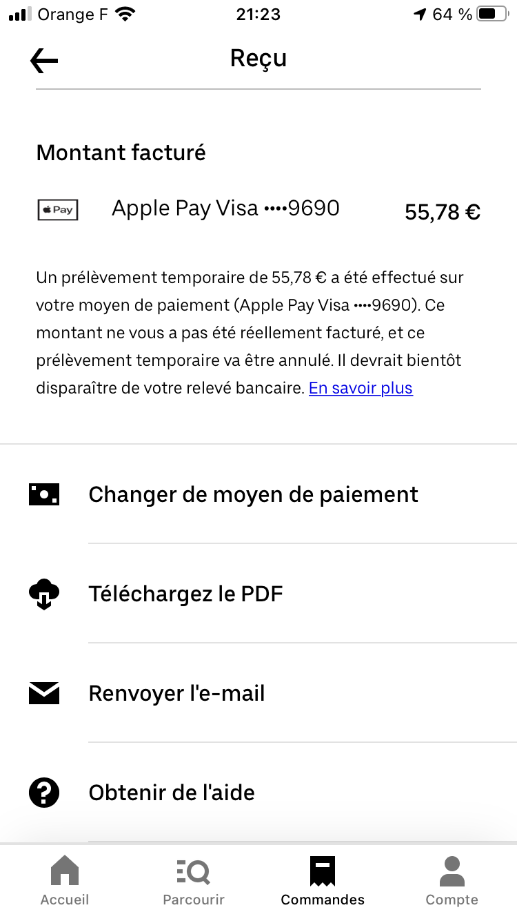 Apple Pay sur Uber eats et les remboursements