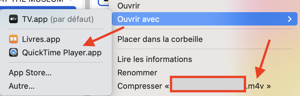 Avec un click droit sur le fichier( dans ce cas ci ***.MV4)