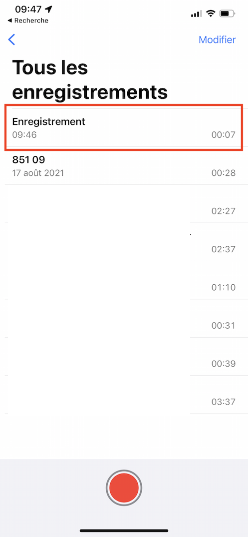 As-tu regardé sur ton iPhone dans l'app Dictaphone directement ?