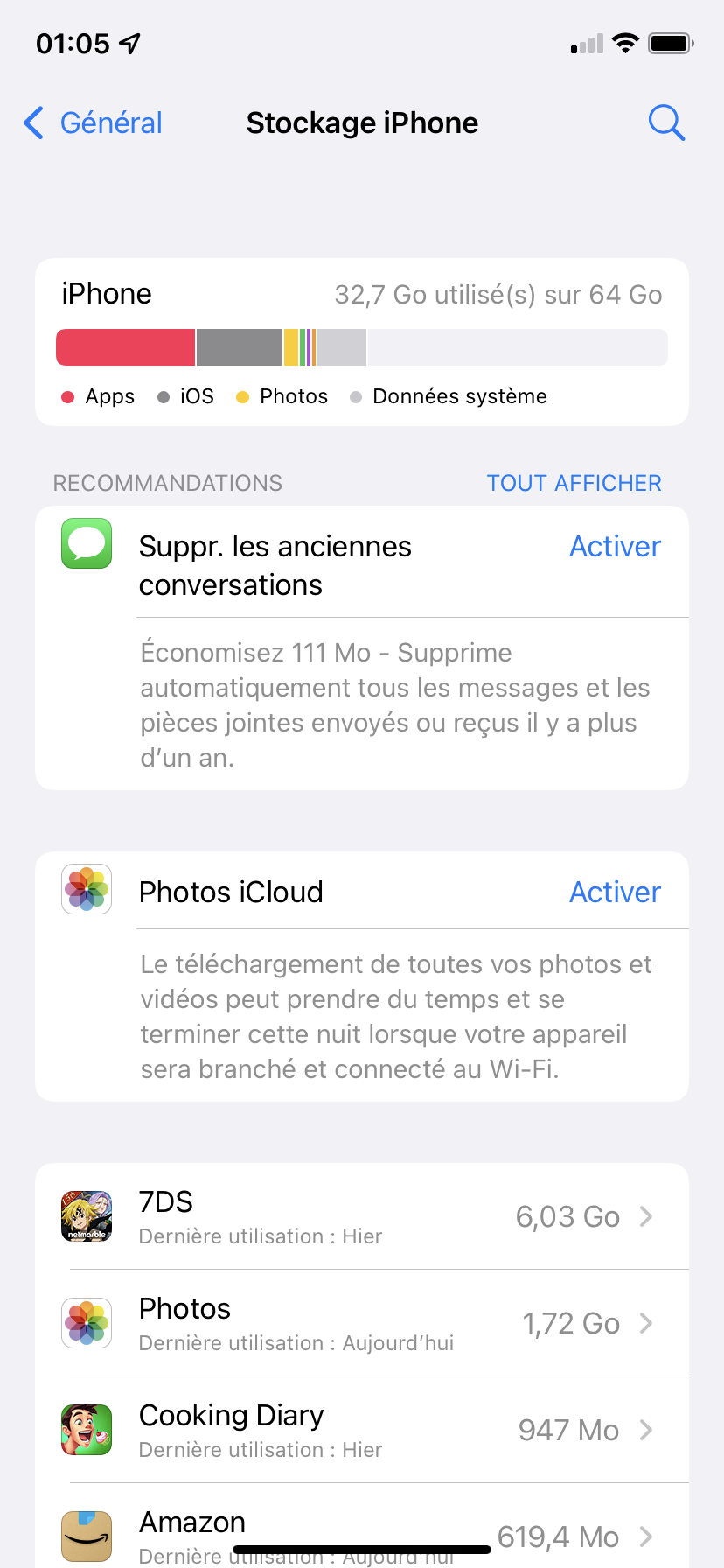 Bonjour. Depuis la mise à jour iOS 15 mon iPhone m’indique « stockage iPhone presque saturé » alors que j’ai plus de 30go disponibles… comment résoudre le problème et faire disparaître cette notification erronée ? J’ai essayé de redémarrer mon téléphone, sans succès. Merci d’avance pour vos réponses