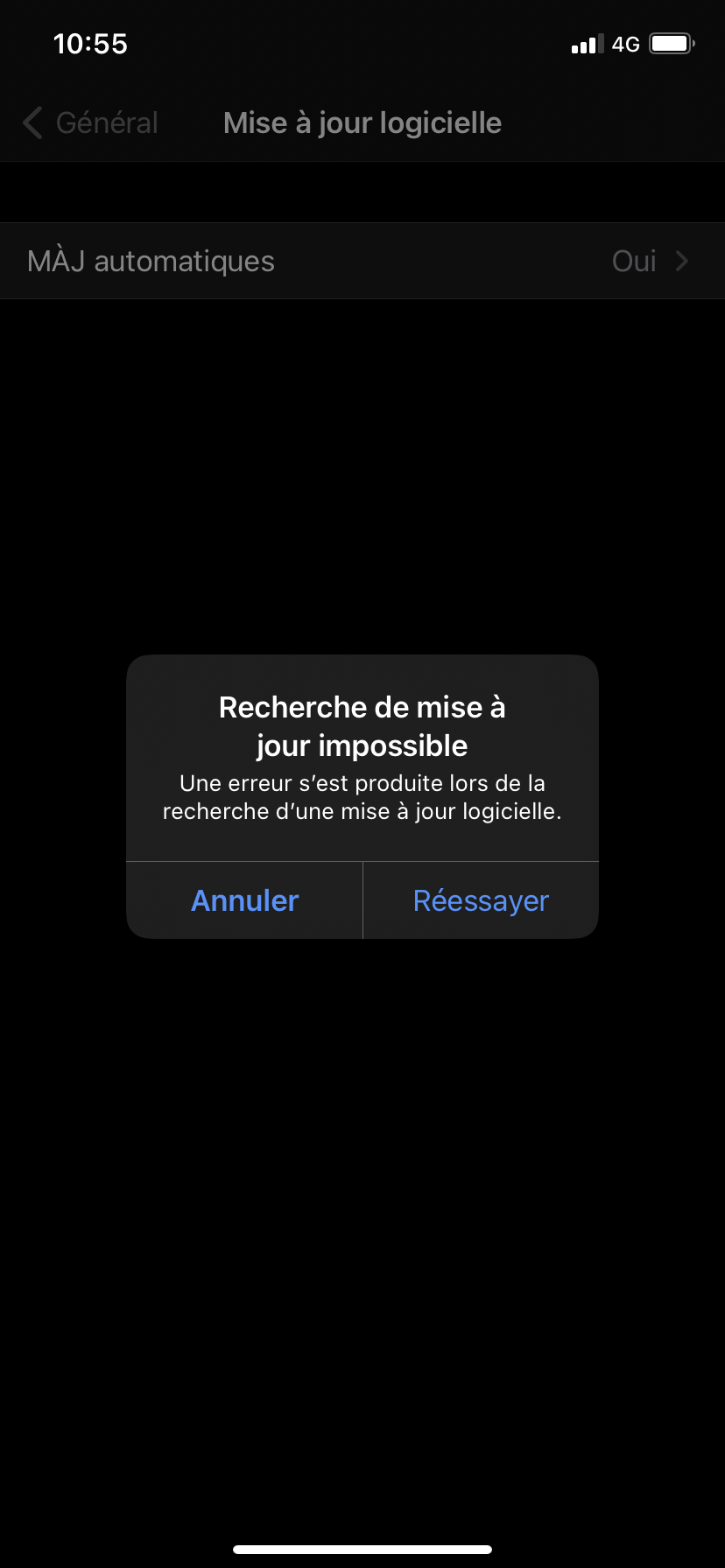 Recherche de mise à jour impossible sur iPhone