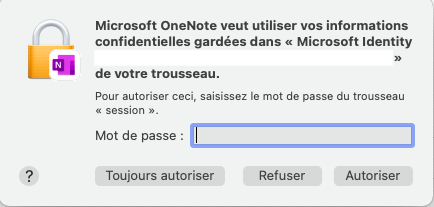 Recemment j'ai installé microsoft Outlook et microsoft Onenote. Au moment de l'ouverture de ces applications un mot de passe défini comme celui du trousseau de ma session m'est demandé, or quand je l'insère cela ne change rien et l'application persiste a ne pas vouloir s'ouvrir. Je ne sais donc que faire...