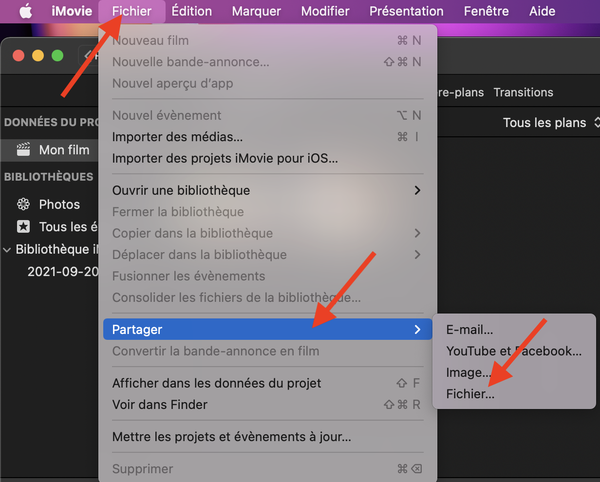 Apres avoir réalise ton montage, tu utilise la fonction du menu Fichier -> Partager -> Fichier ...