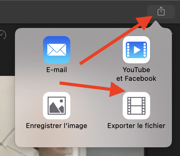 ou tu utilise l'icône du menue en haut a droit avec la sélection "Exporter le fichier"