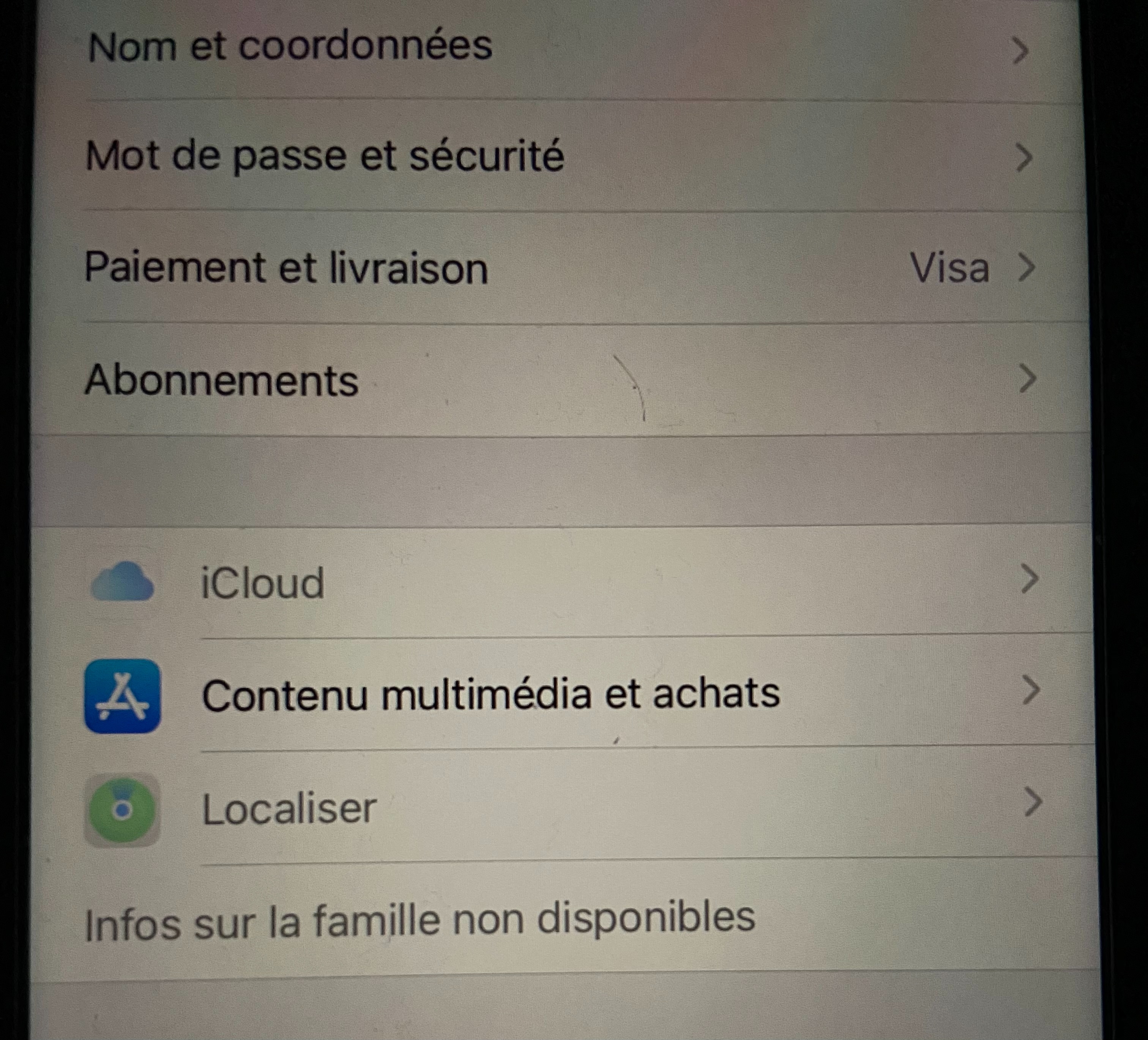 Onglet iCloud et Localiser sont grisés sur iPhone