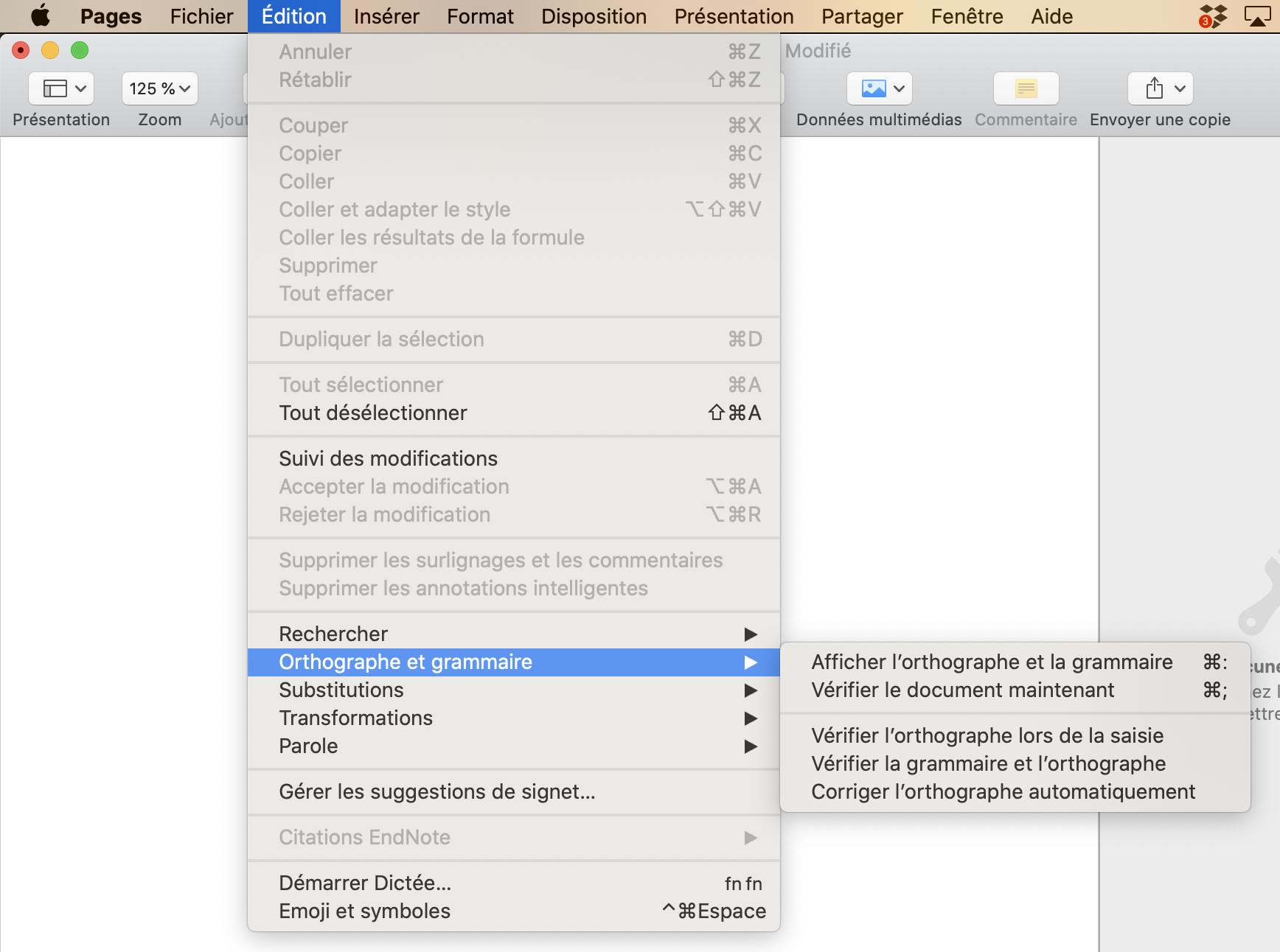 Comment sur Pages (Mac) avoir accès à la correction automatique et aux différentes propositions d'orthographe ?