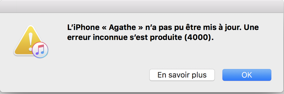 erreur 4000 que faire cela fait 4 fois que je fais la mise à jour... merci