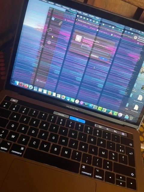 Depuis peu, des lignes horizontales tremblotantes roses et vertes sont apparues sur l'écran de mon MacBook.