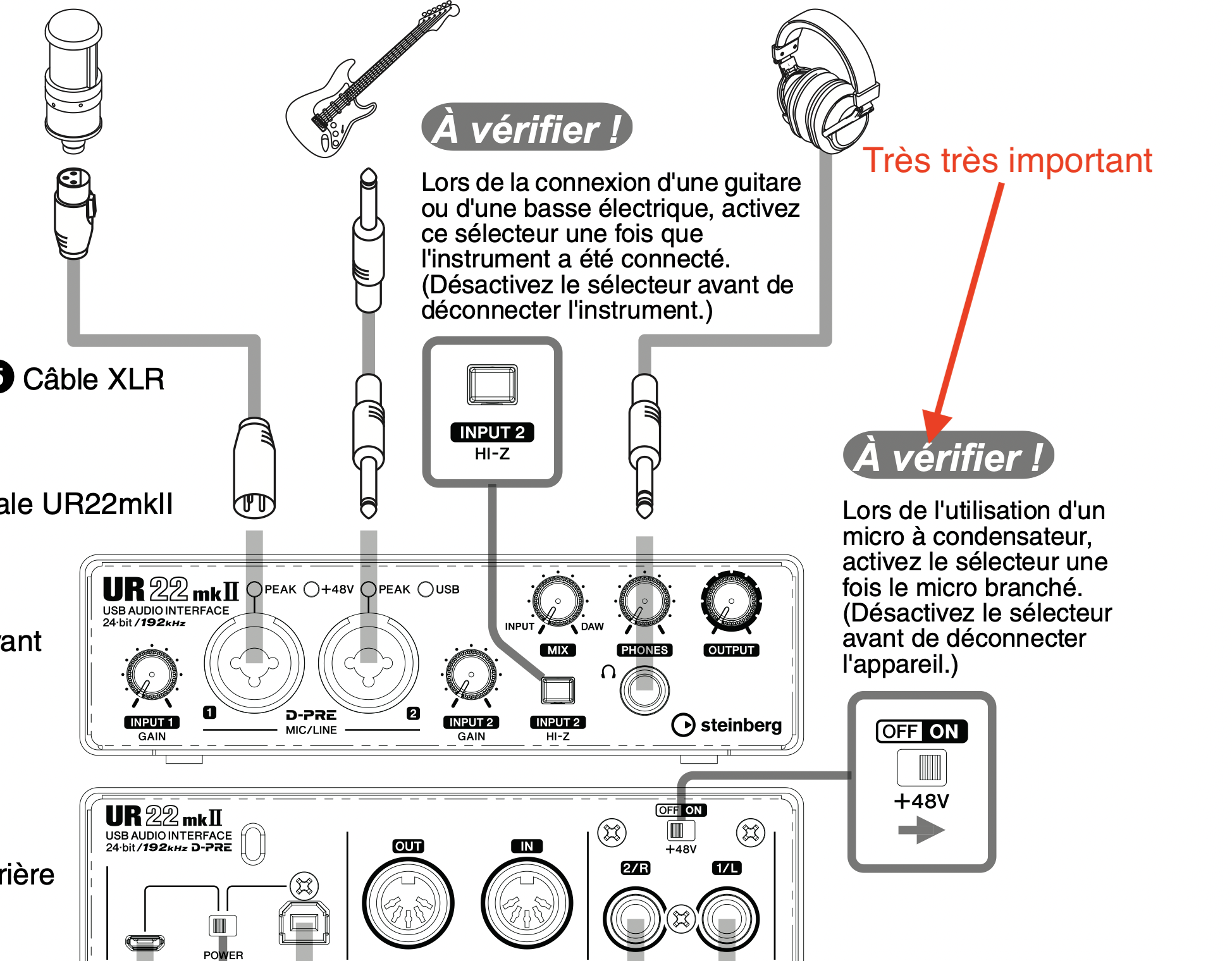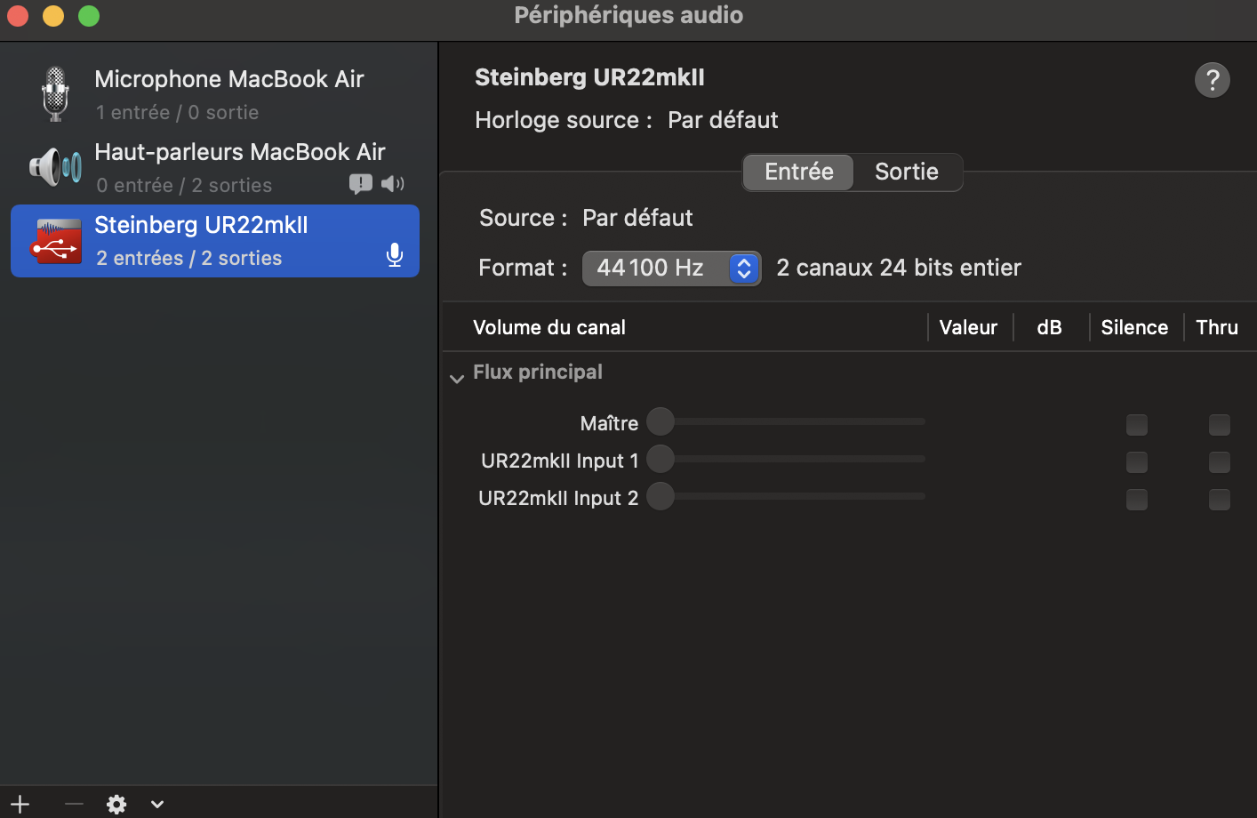 Je suis avec une carte son UR22 MkII et un Mac Book Air 2020.