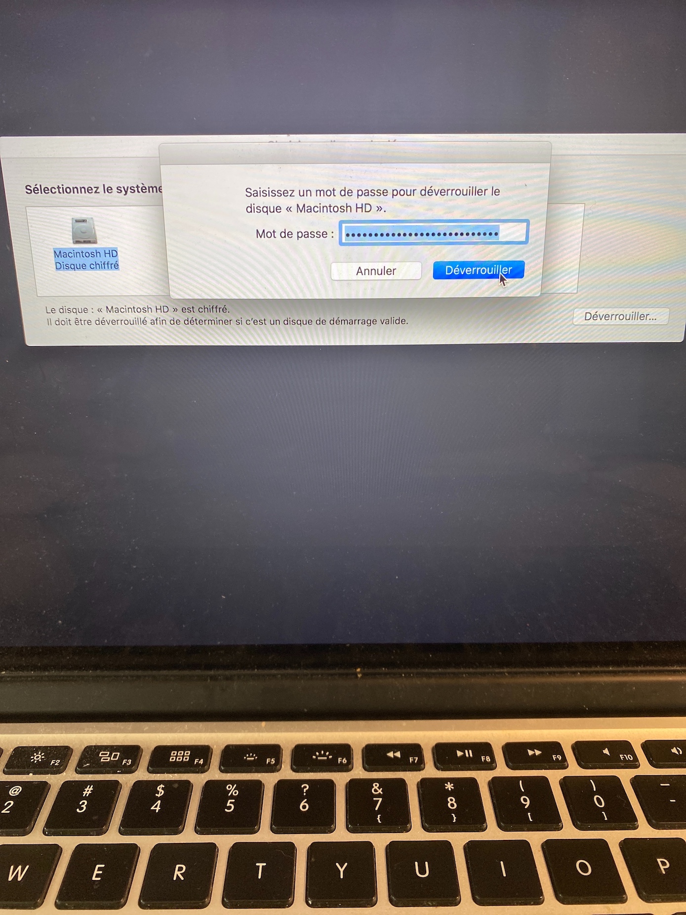 Mot de passe pour déverrouiller disque Macintosh HD sur Mac