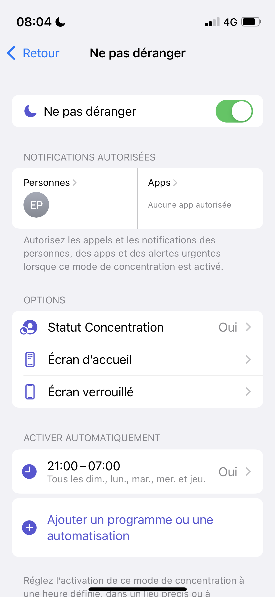 j’ai réglé le mode « ne pas déranger » pour qu’il s’active de 21h à 7h.