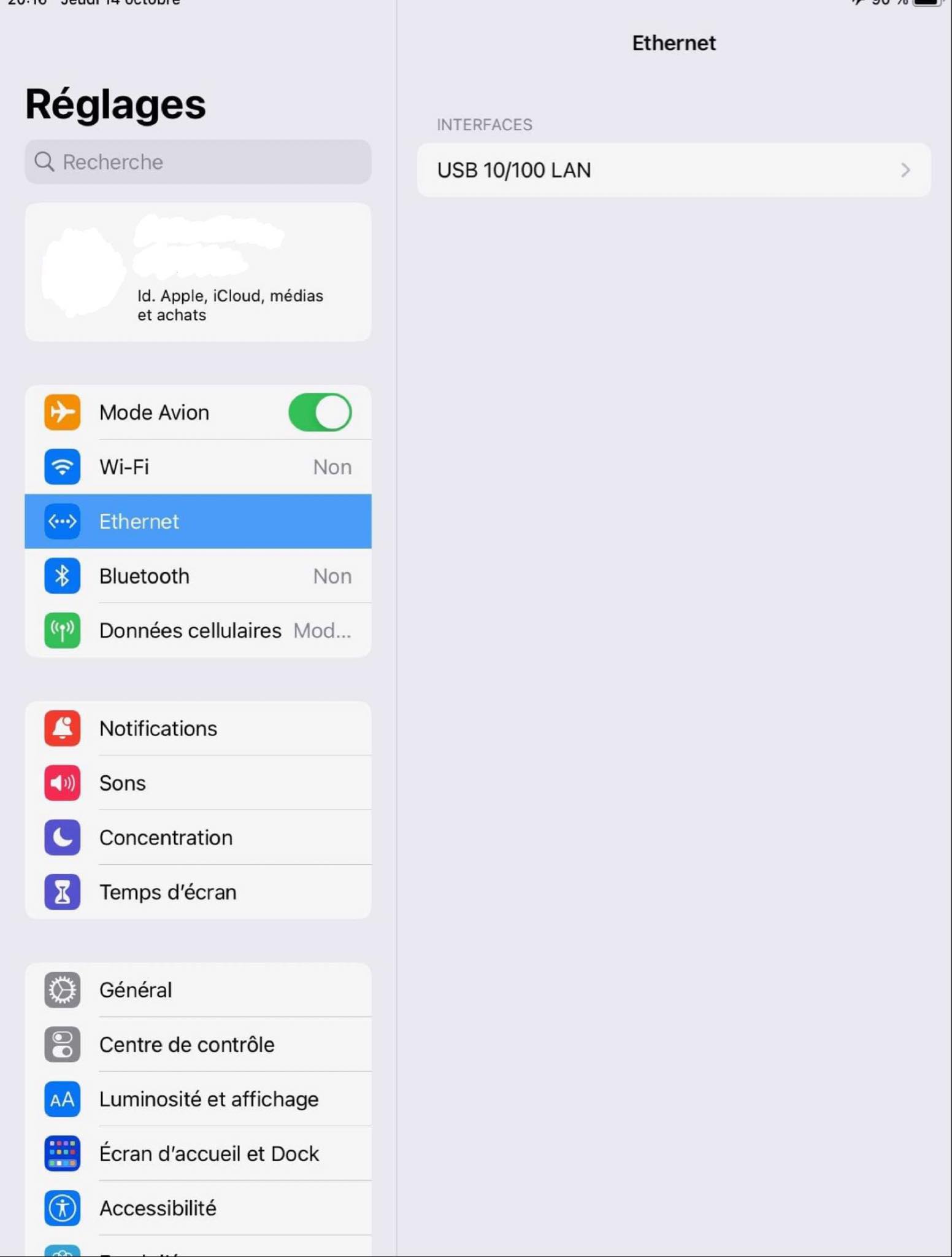 Connexion à internet avec câble Ethernet RJ45 sur iPad
