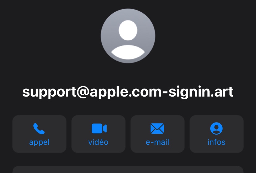 Bonjour , après un vol de mon iPhone la semaine dernière . J’ai reçu un message aujourd’hui de support@apple.com-signin.art . Est ce une vrai adresse ?