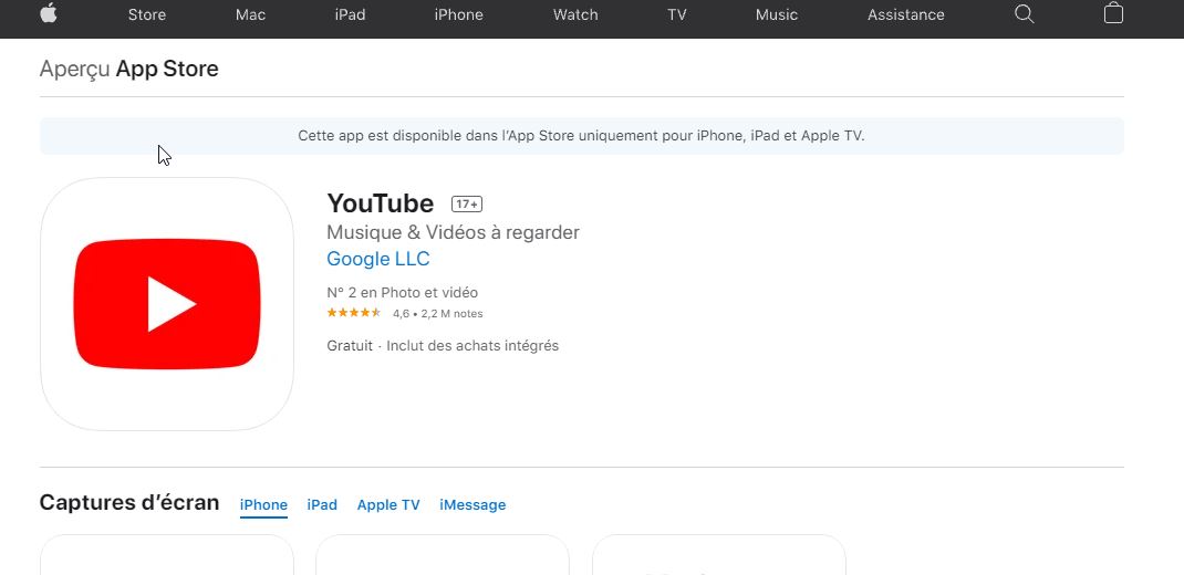 Si je me tiens à la page de l'app YouTube, non :