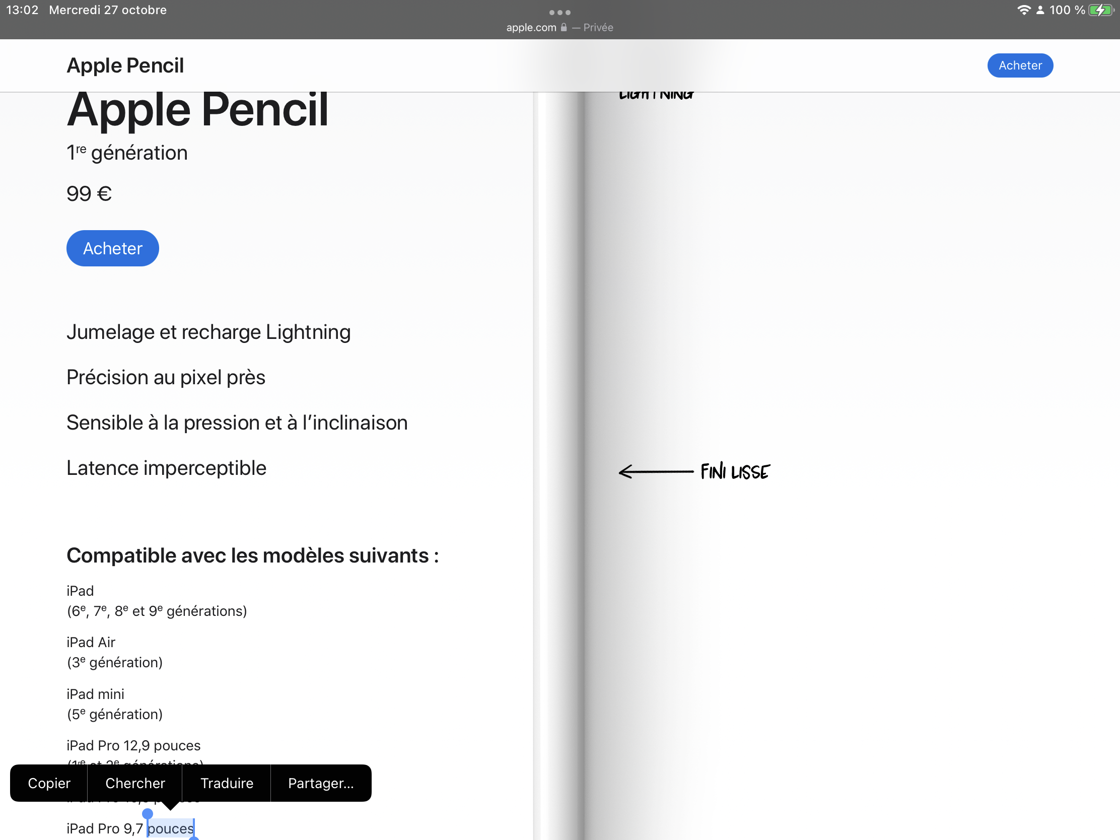 C’est un Apple Pencil deuxième génération dont vous avez besoin.