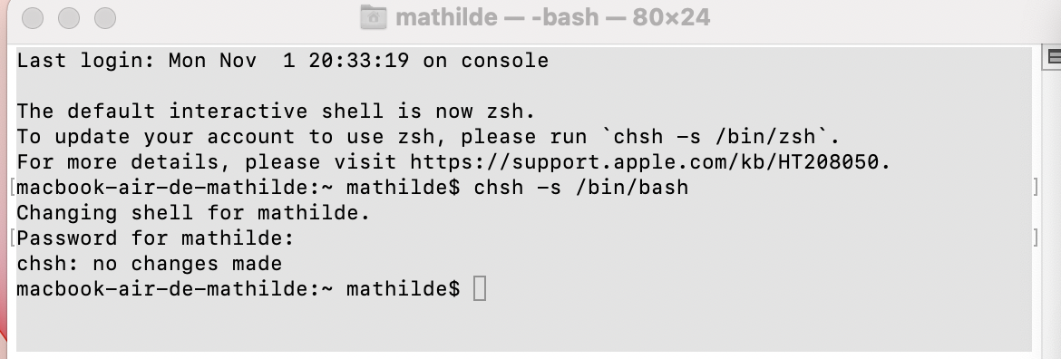 macbook-air-de-mathilde:~ mathilde$ chsh -s /bin/bash