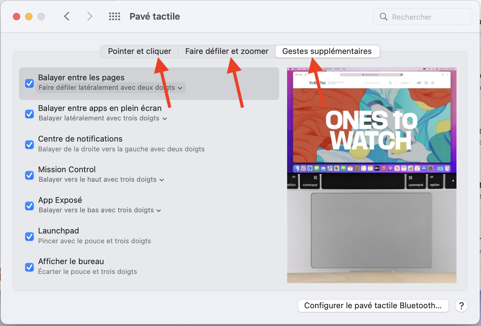 Personnaliser trackpad Mac