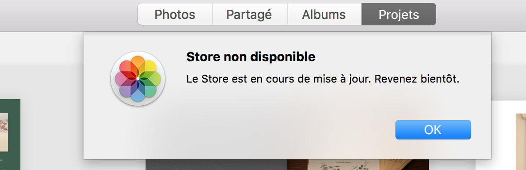 Bonjour, je n'arrive pas à passer commande d'un livre de photo via Photos, "j'ai un message de maintenance" depuis plus d'1 semaine! Est-ce bien le cas?