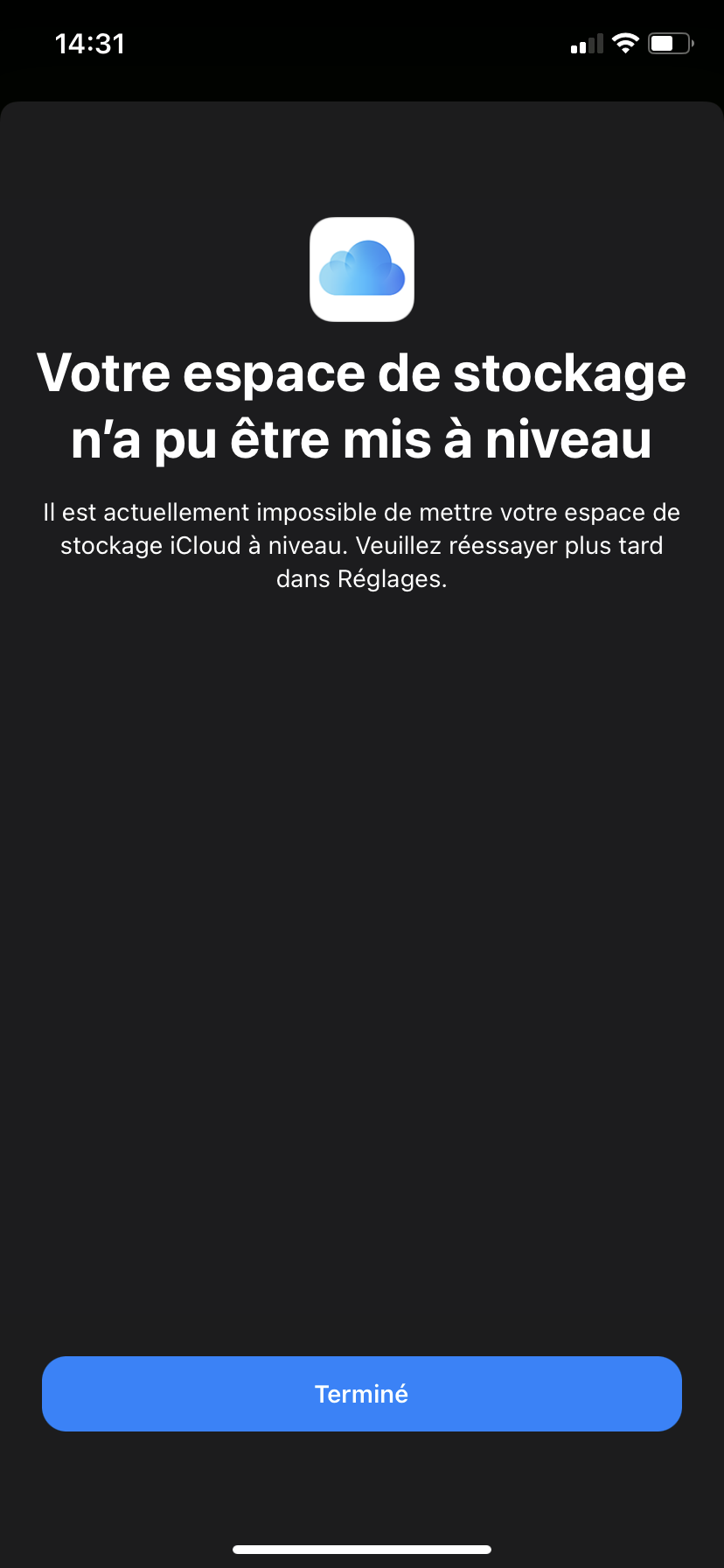Puis déconnectez votre Identifiant Apple, et reconnectez le ensuite avant de recommencer votre essai de souscription à iCloud+
