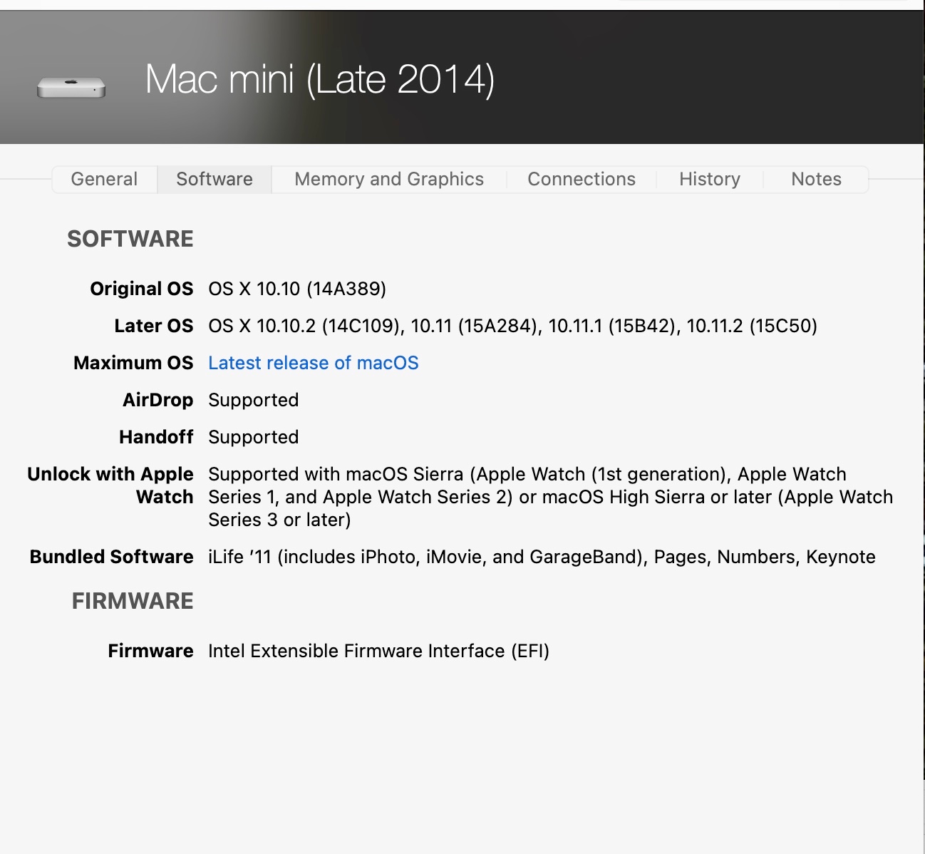 jai vérifie mon Mac mini est compatible avec Mojave installation.