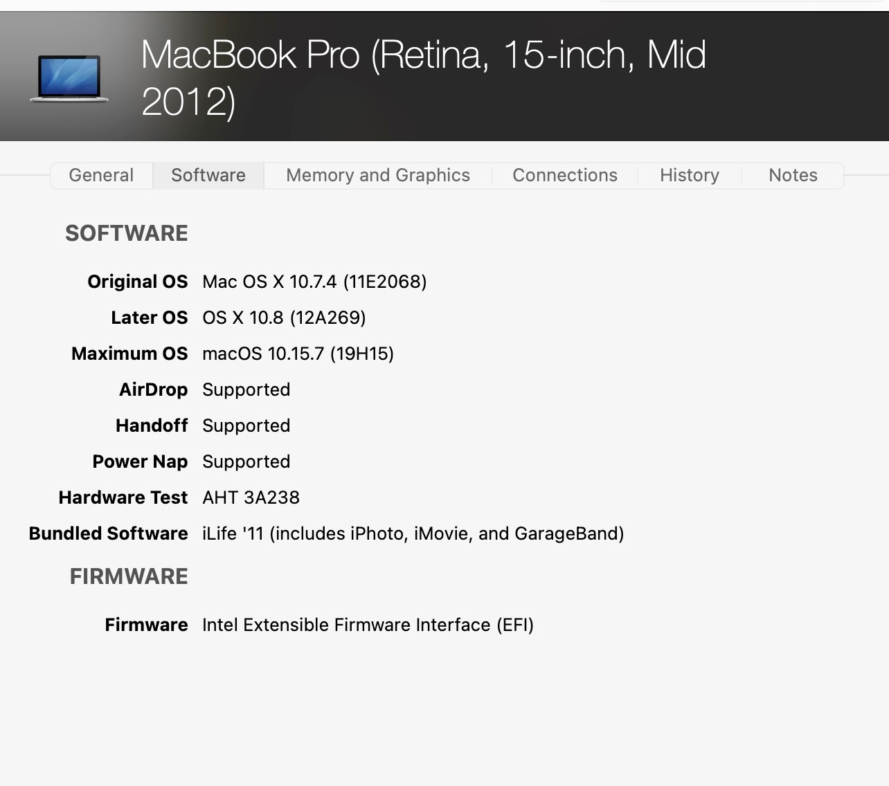 Mon MacBook Pro mi-2012 a la version 10.15.7 de MacOS Catalina.