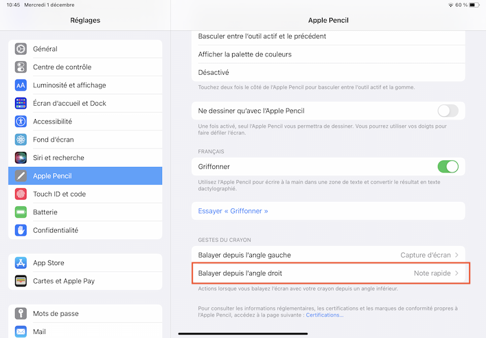L'une des options dépend du fait que tu possèdes ou non un Apple Pencil (image 1) mais l'article Créer des notes rapides partout sur l’iPad, ne précise pas que c'est une obligation d'en avoir un, donc je ne pense pas que cela soit le souci.