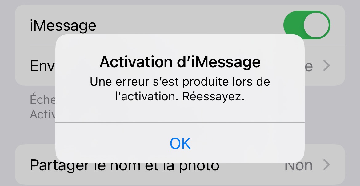 J’ai une double SIM pour avoir deux numéros de téléphone, mais les iMessage ne fonctionne pas à tous les coups j’ai un message d’erreur.