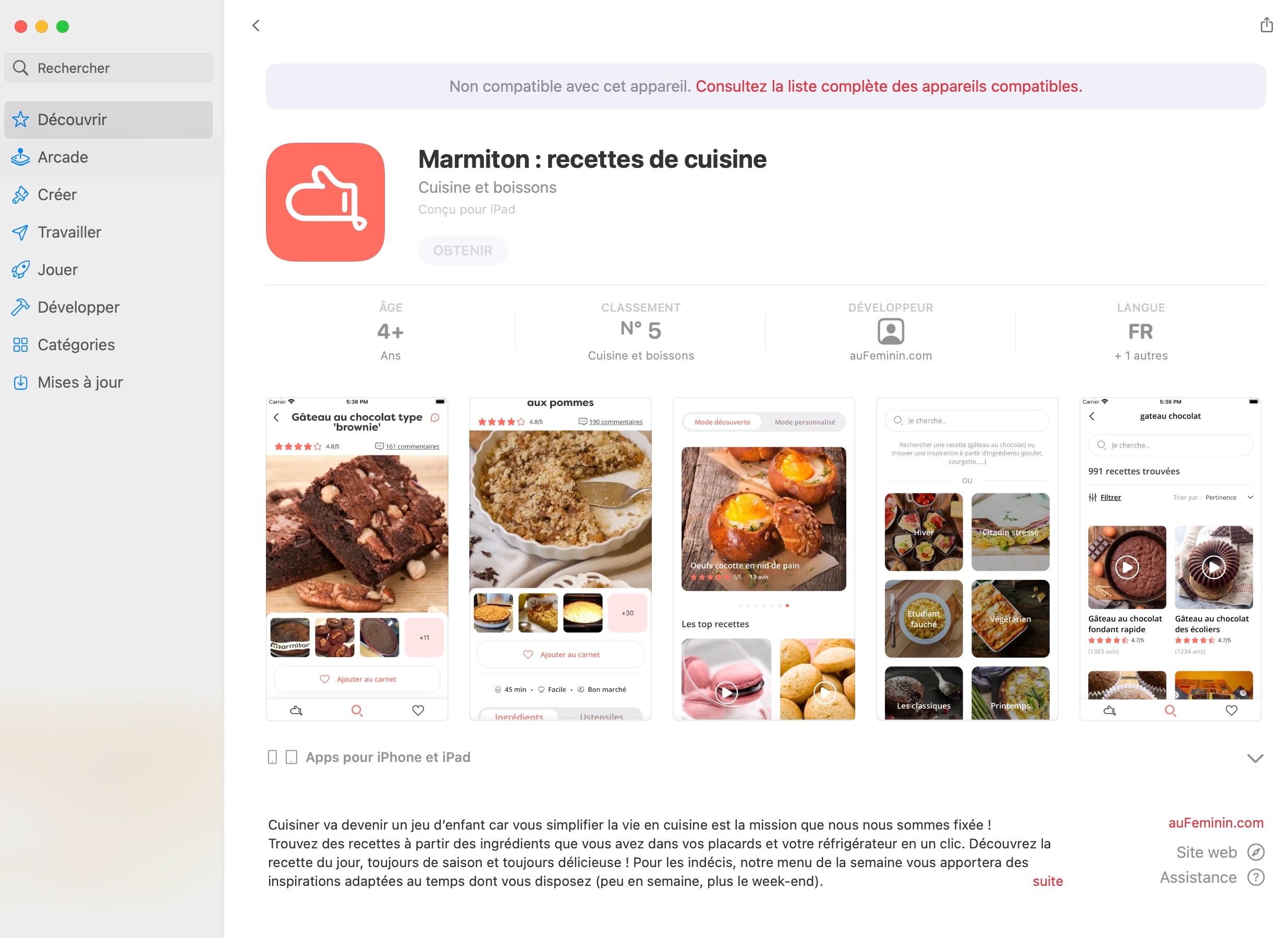 Voici le lien pour télécharger: https://apps.apple.com/fr/app/marmiton-recettes-de-cuisine/id318796083