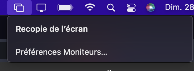 J'ai tenté via le centre de contrôle avec la recopie d'écran qui ne m'affiche pas l'iPad (sur l'iPad, je peux me connecter au Mac par contre) et quand je clique sur Préférences moniteurs, soit rien ne se passe, soit je suis amené sur la fenêtre indiquant mon écran.