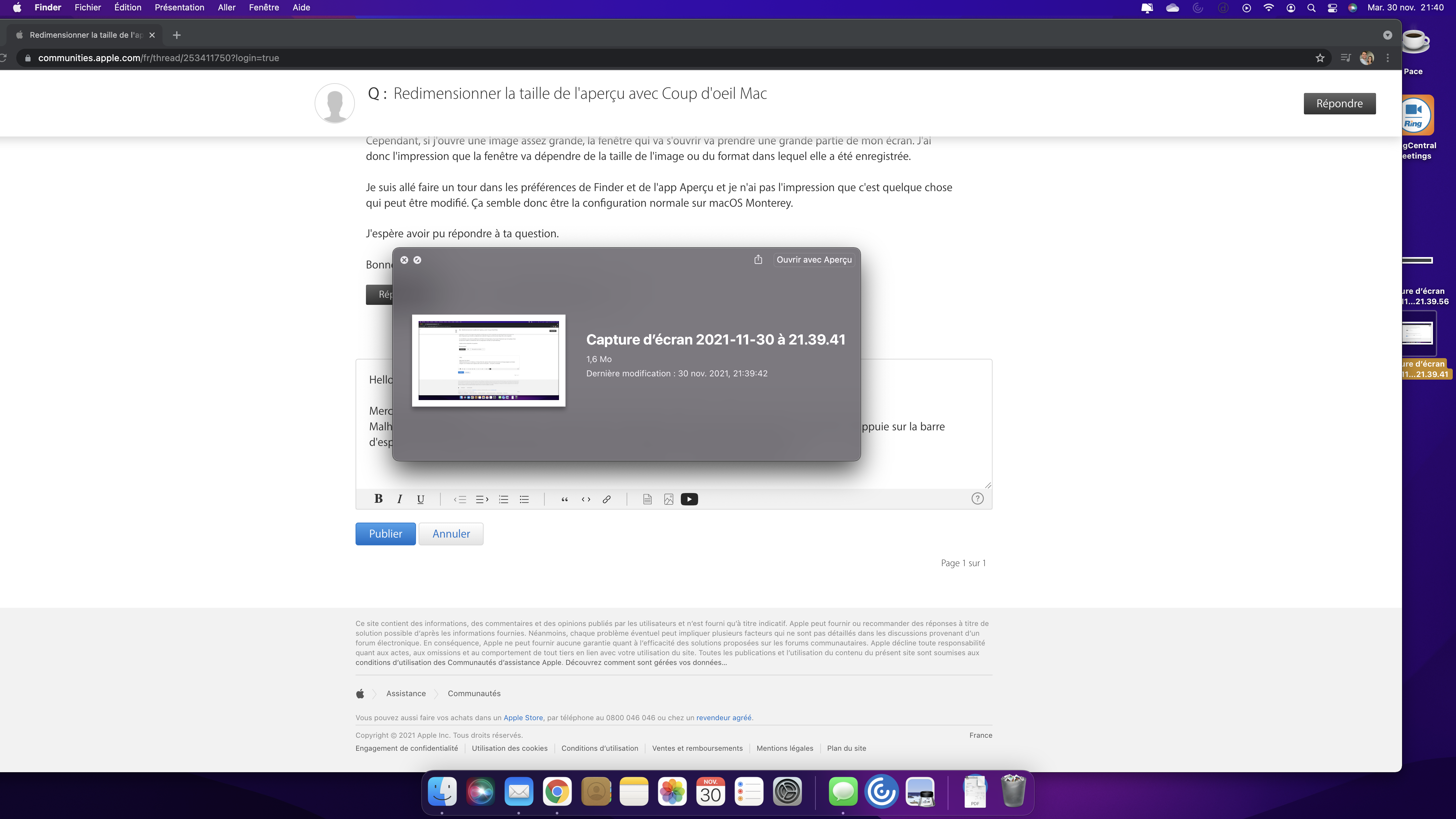 Redimensionner la taille de l'aperçu avec Coup d'oeil Mac